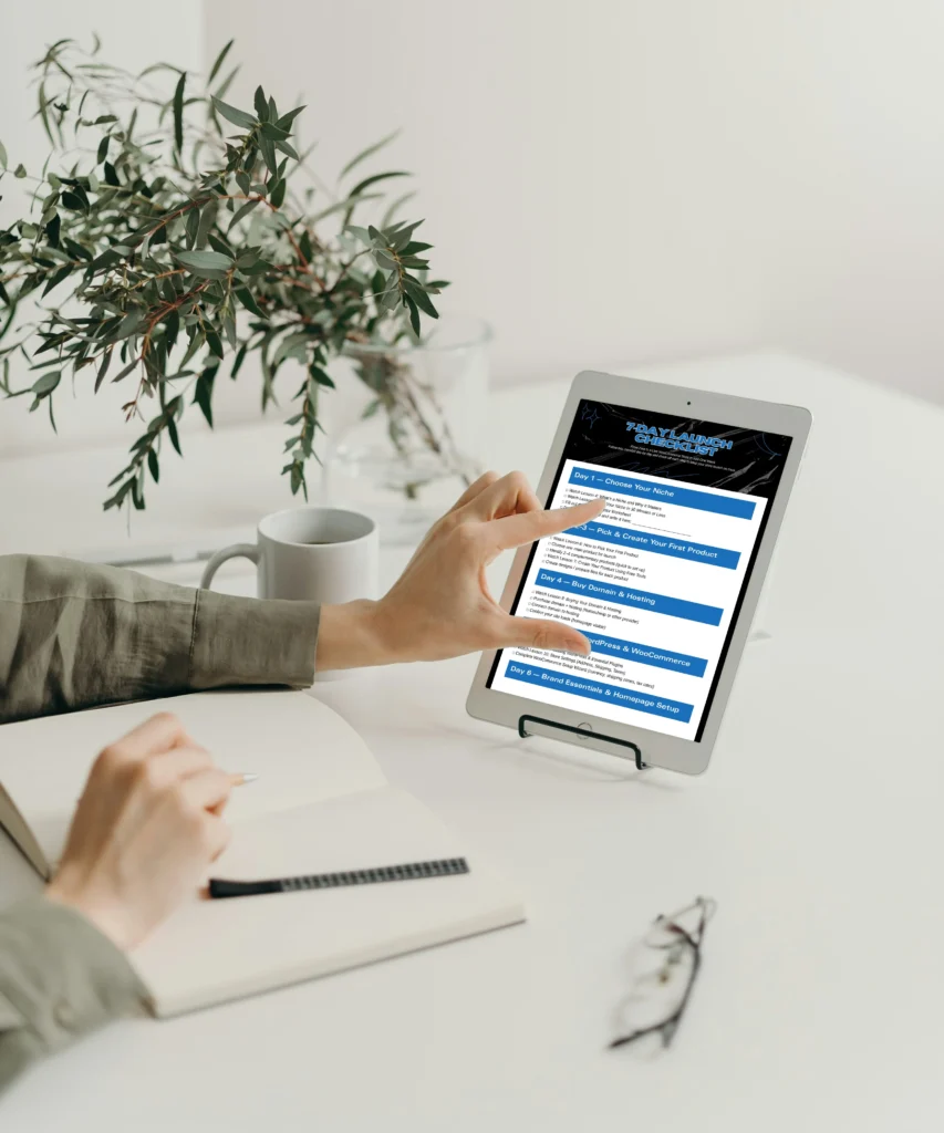 Cut through the overwhelm with our free checklist. Follow 7 simple steps to pick your niche, create your product, and launch your store in just one week.